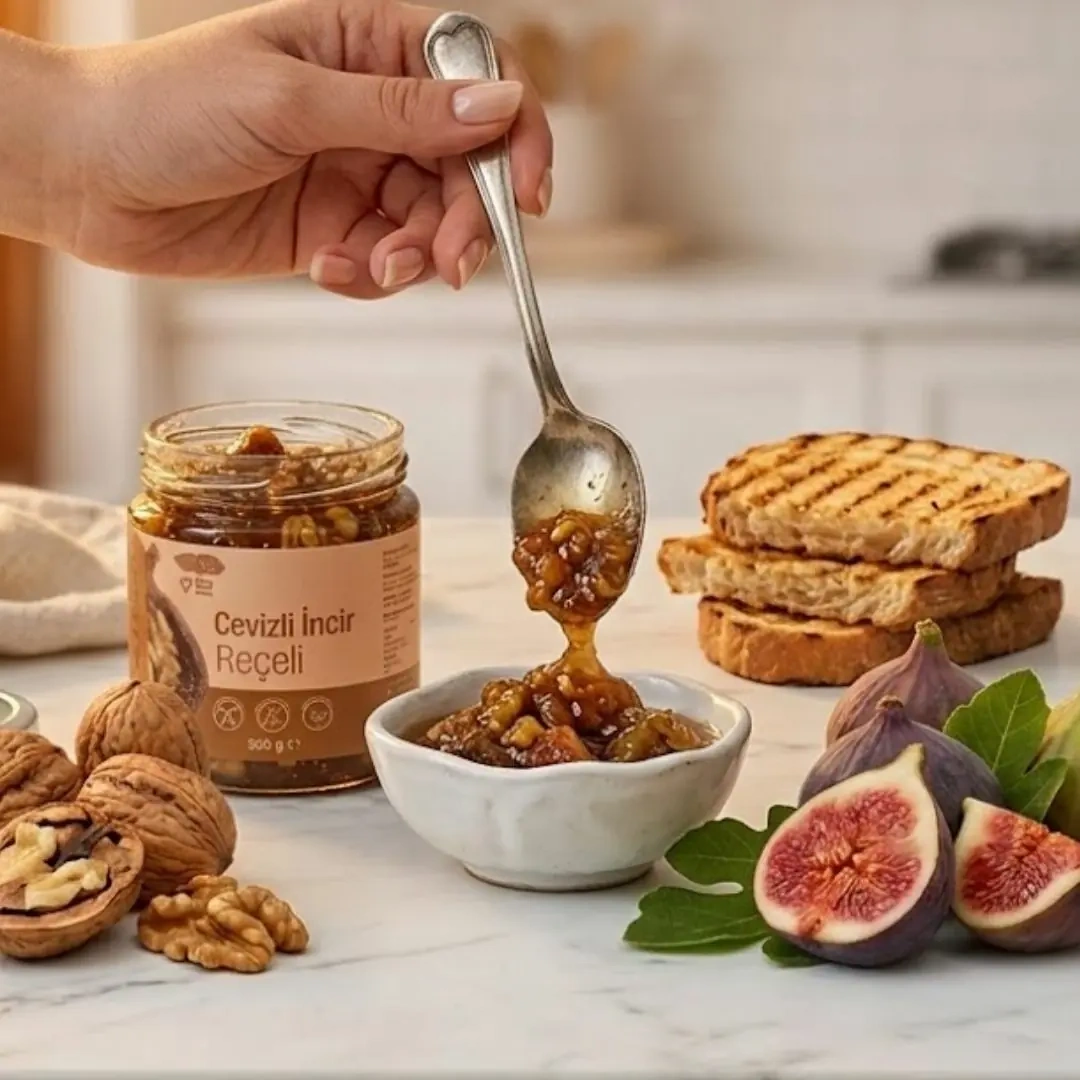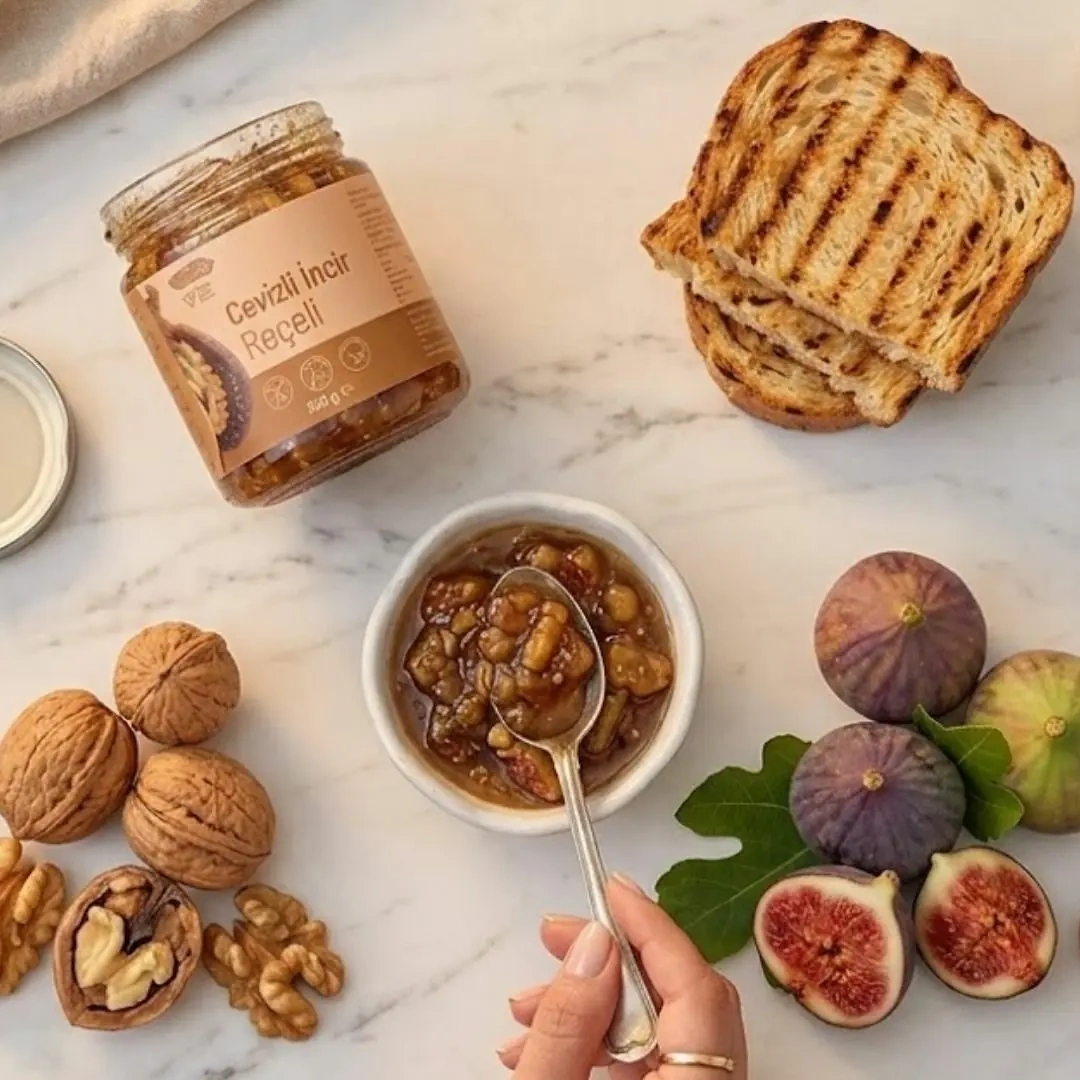 Hijyenik koşullarda hazırlanıp paketlenen cevizli incir reçeli, doğal ve katkısız reçel çeşitleri arasında öne çıkan ürünlerden biridir.