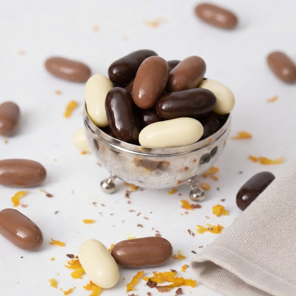 Doğal portakal kabukları işlenerek aroması korunur ve pürüzsüz çikolata kaplama ile kaplanır. Hem günlük atıştırmalık olarak hem de kahve yanında ikramlık olarak tercih edilir. Şık görünümü sayesinde hediye kutuları, özel gün sunumları ve kuruyemiş karışımları için ideal bir üründür.