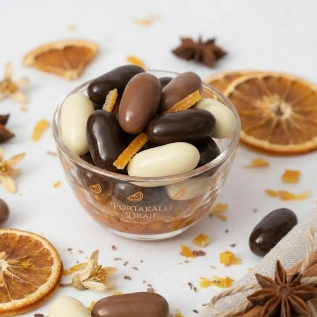 Çikolata kaplı portakal draje; özenle hazırlanmış portakal parçalarının kaliteli çikolata ile kaplanmasıyla elde edilen özel bir atıştırmalıktır. Portakalın hafif ekşi ve ferah aroması, çikolatanın yoğun lezzetiyle dengeli bir uyum yakalar.