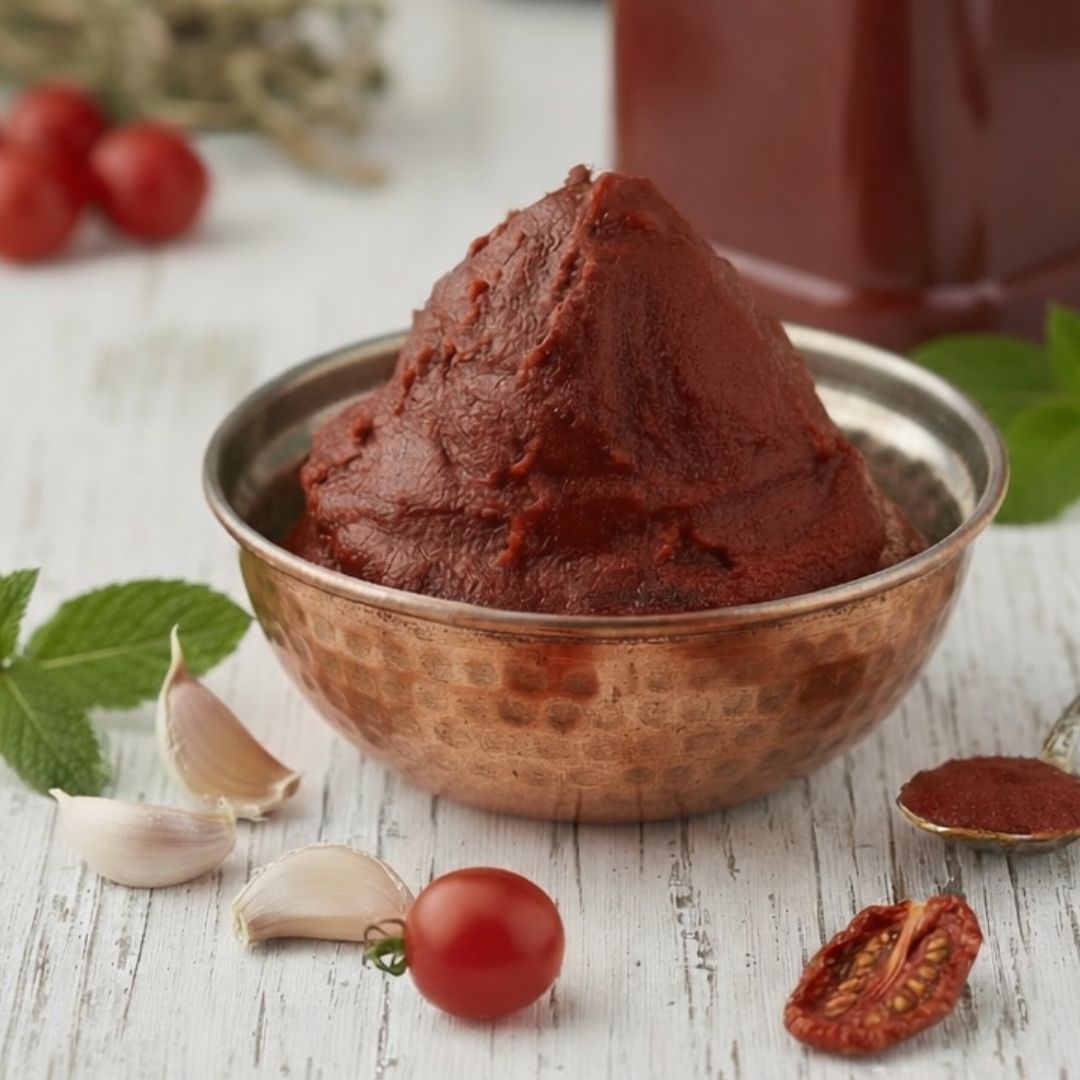 Domates salçamızda kırmızı tombul domateslerimizi kullanıyoruz. Hem daha sulu hem de mis kokusuyla tombul domateslerimizle yaptığımız salçanın tanıdan doyum olmuyor. Artık insanlar bu konuda iyisini kötüsünü ayırmakta zorlanıyor. Biz gerçekten evlerimizdeki yöntemle bizim kendi reçetelerimizle üretiyoruz. Hiç koruyucu madde yok raf ömrünü uzatacak uygulamalar yok. Domates, kaya tuzu; o kadar. Örneğin metal kaşık asla kullanmayız.