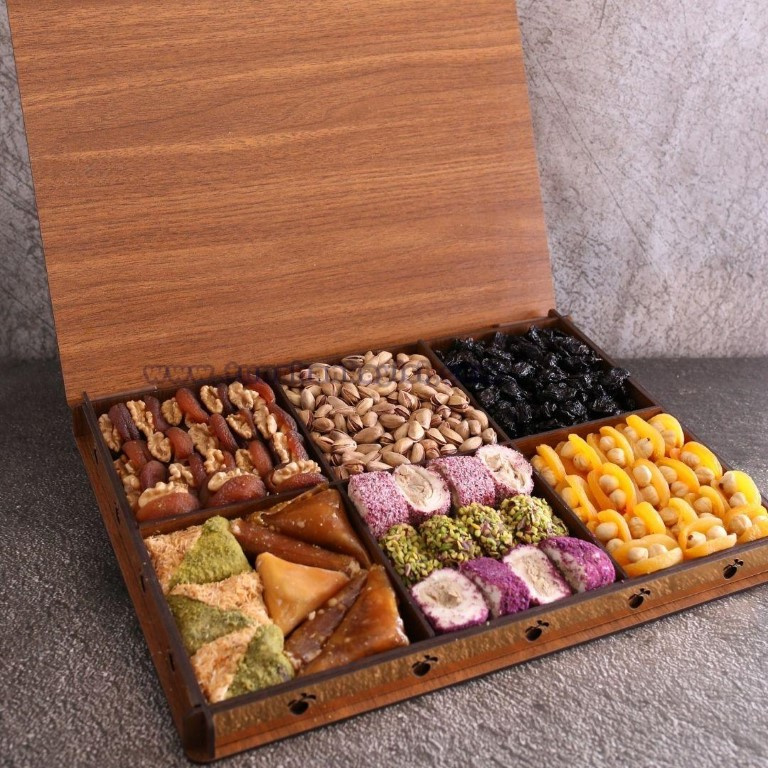 İsme Özel Hediyelik Ahşap Gold Desenli 6 Bölmeli Kayısı Kutusu 54