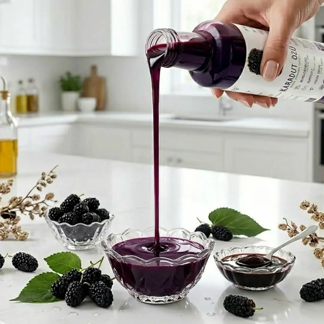 Karadut özü, taze ve doğal karadutların sıkılıp kaynatılmasıyla elde edilen yoğun kıvamlı ve tamamen katkısız bir şifa kaynağıdır.