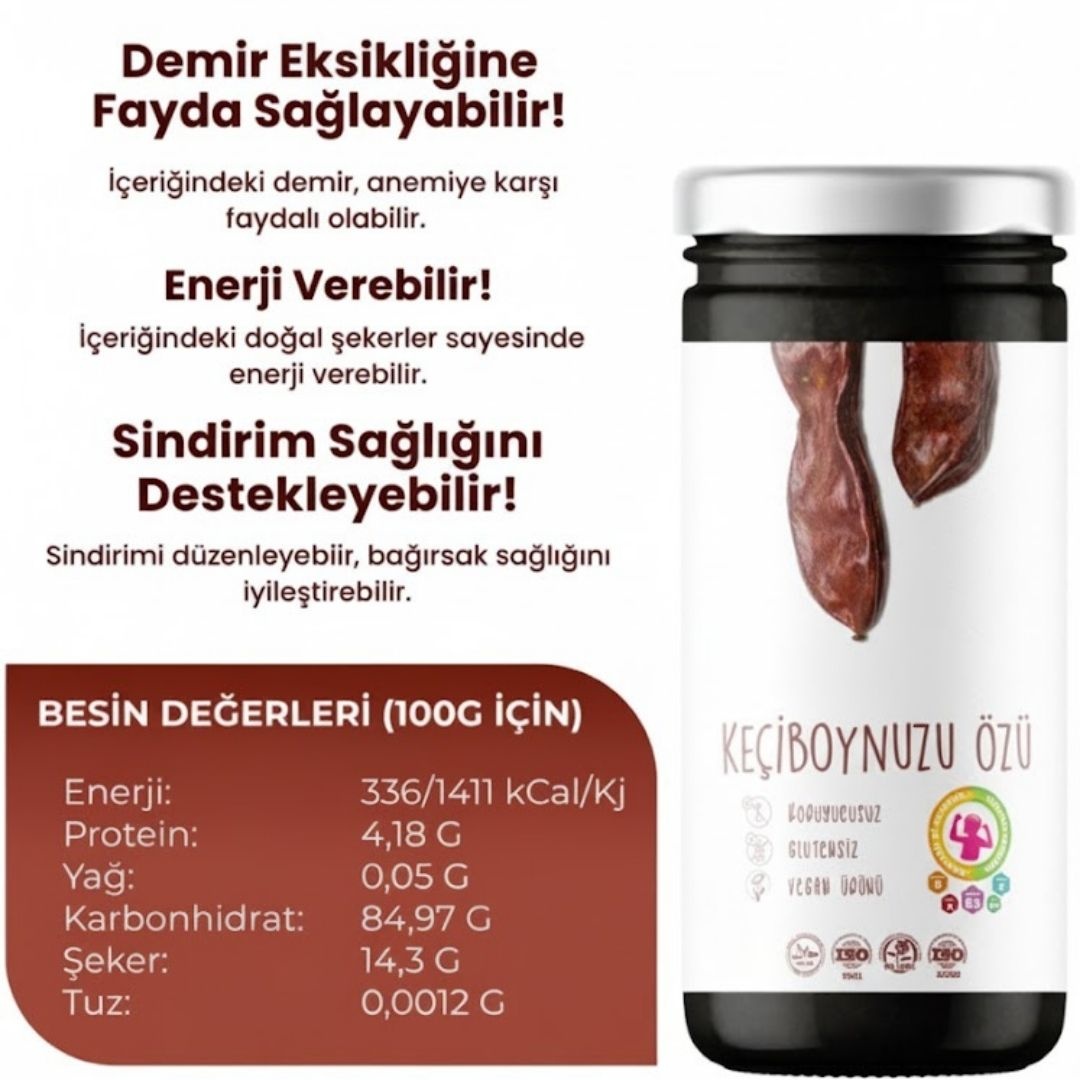 Keçiboynuzu özü, Akdeniz’in verimli bölgelerinde yetişen keçiboynuzlarının (harnup) kaynatılıp yoğunlaştırılmasıyla elde edilen doğal ve katkısız bir üründür.