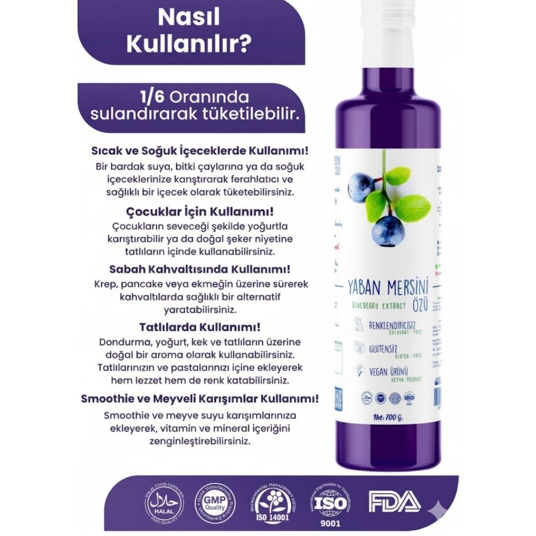 Yaban mersini özü; taze ve özenle seçilmiş yaban mersinlerinin kaynatılıp yoğunlaştırılmasıyla elde edilen doğal meyve konsantresidir.